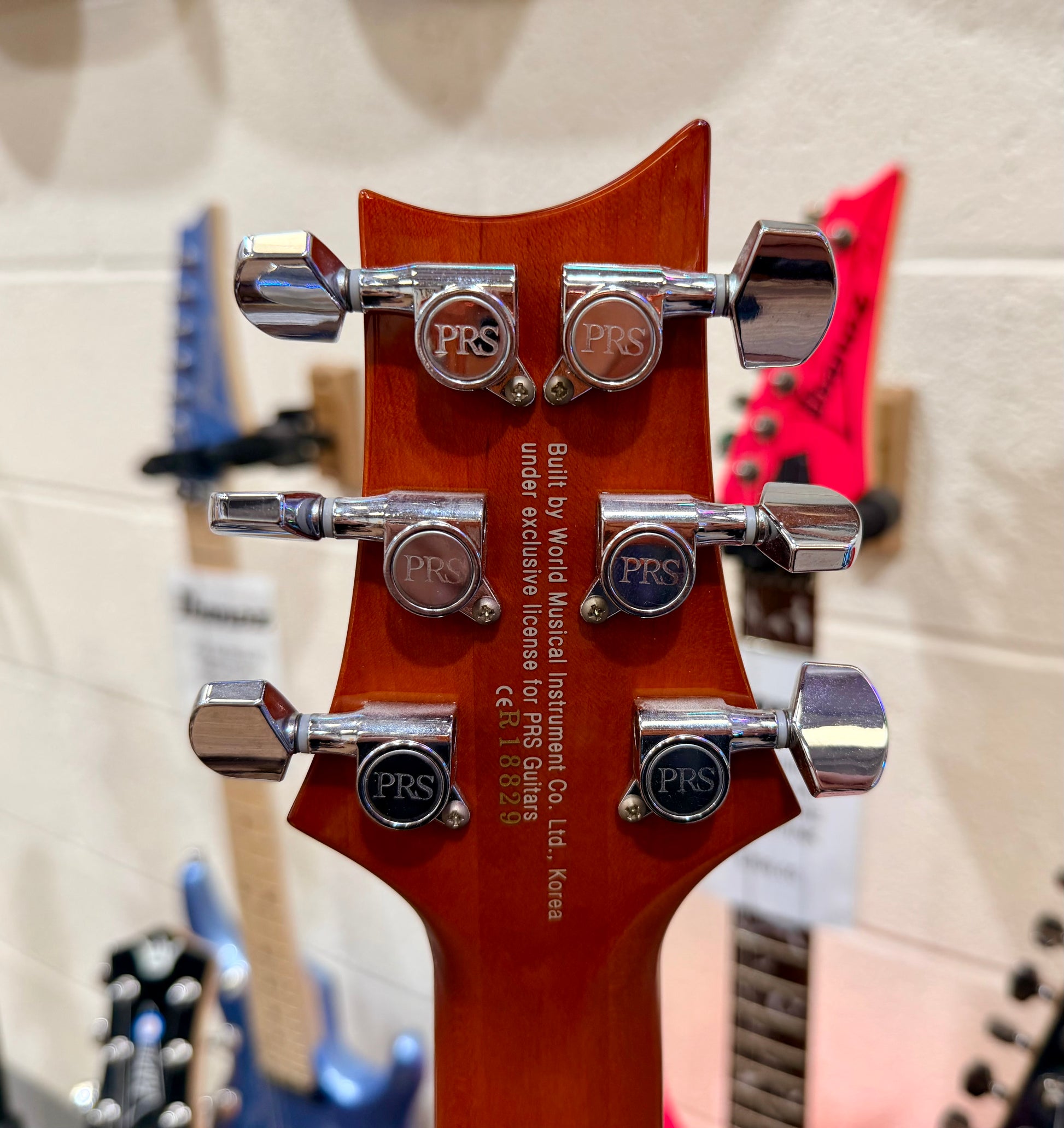 The PRS designed non-locking tremolo bridge can be used to add vibrato and other pitch adjustment effects via the included nickel tremolo arm. With a string thru construction and a spring loaded action, the tremolo bridge offers unique accents perfect for lead guitarists whilst the locking tuners provide improved tuning stability.