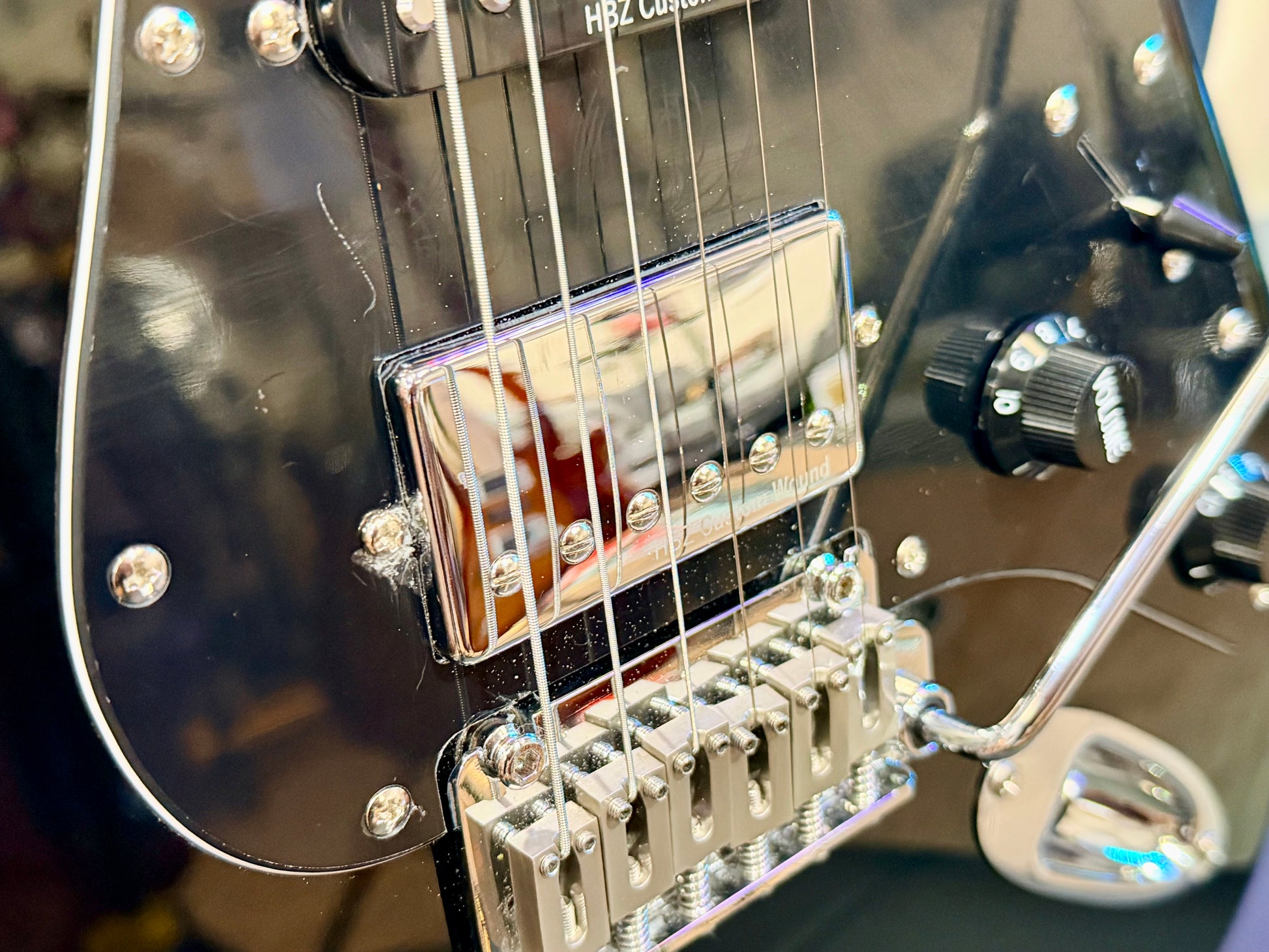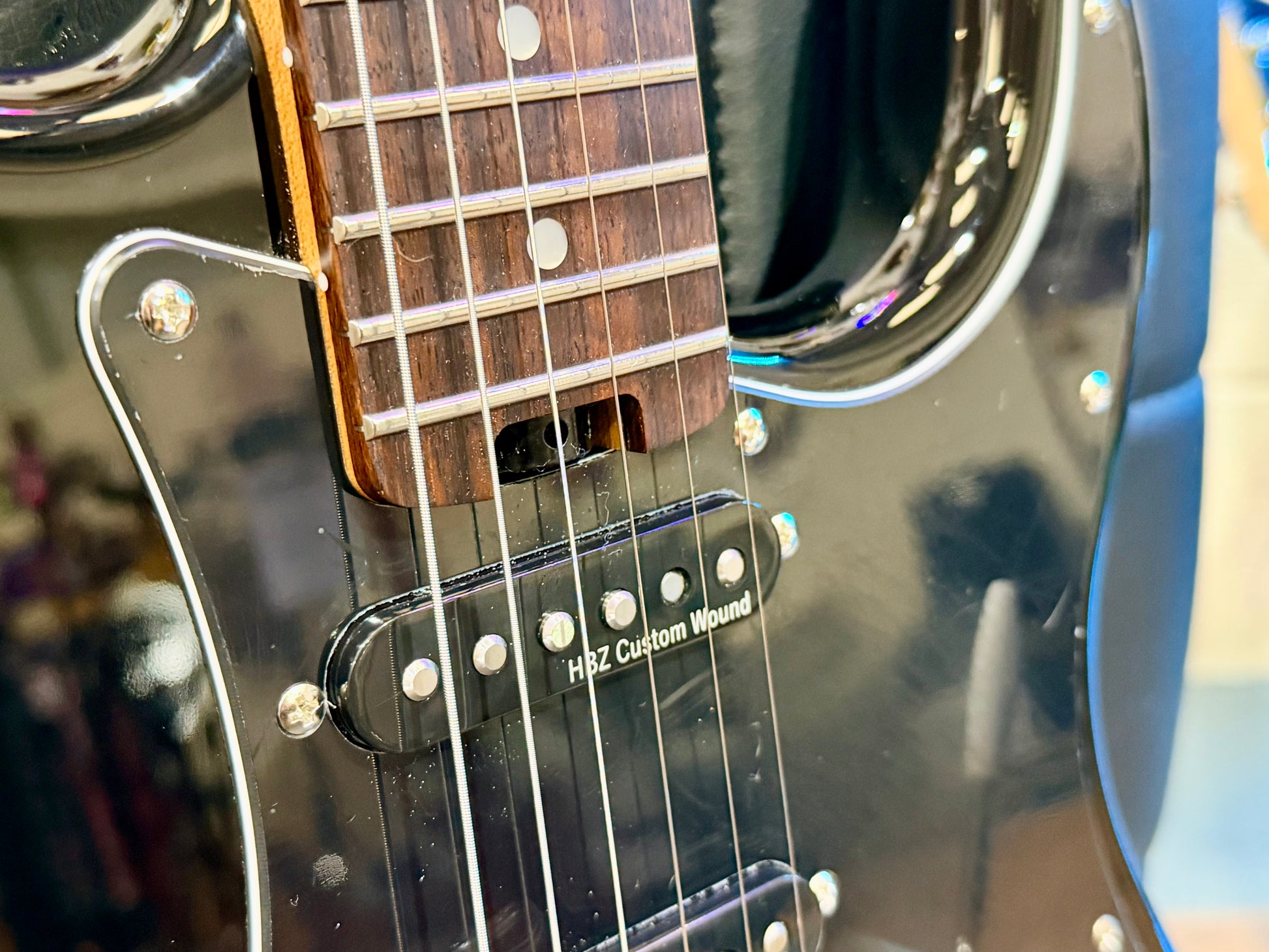 Pickups: HBZ Custom Wound VTH Alnico 5 Covered humbucker (bridge), HBZ Custom Wound VT-M Alnico 5 (middle) and HBZ Custom Wound VT-N Alnico 5 (neck) single coils