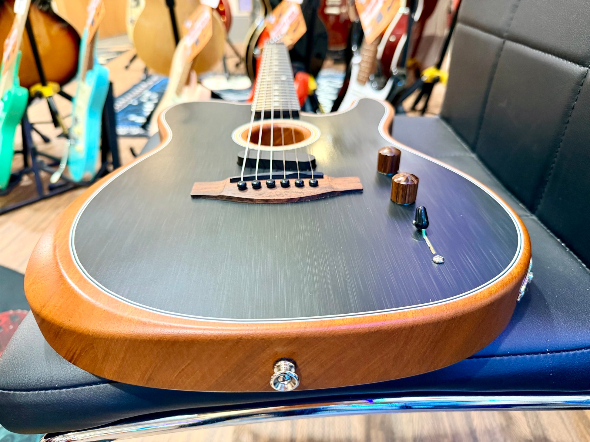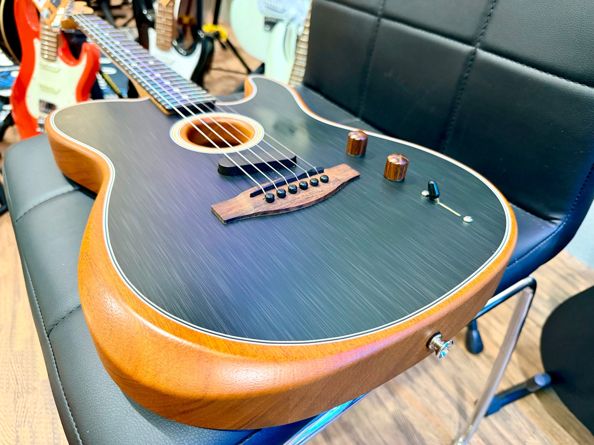 This Acoustasonic is in stunning condition, finished in a beautiful brushed black and well cared for from new. Expect some minor wear and signs of use but no major damage.