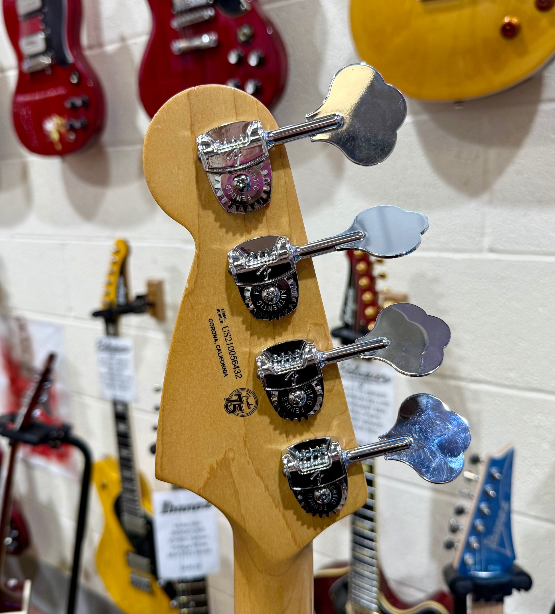 Straight from Corona, California comes the beautifully made and thoughtfully crafted American Performer Mustang. An enhanced design complements the iconic offset shape that made it stand out in the first place. This bass guitar is excellent for any music style. It delivered ear breaking noise on stage with Sonic Youth and Trevor Boulder brought the glam as a member David Bowie's backing troupe, the enigmatic Spiders from Mars. It's small size and comfortable shape make it an excellent bass for serious beginners and professionals alike.