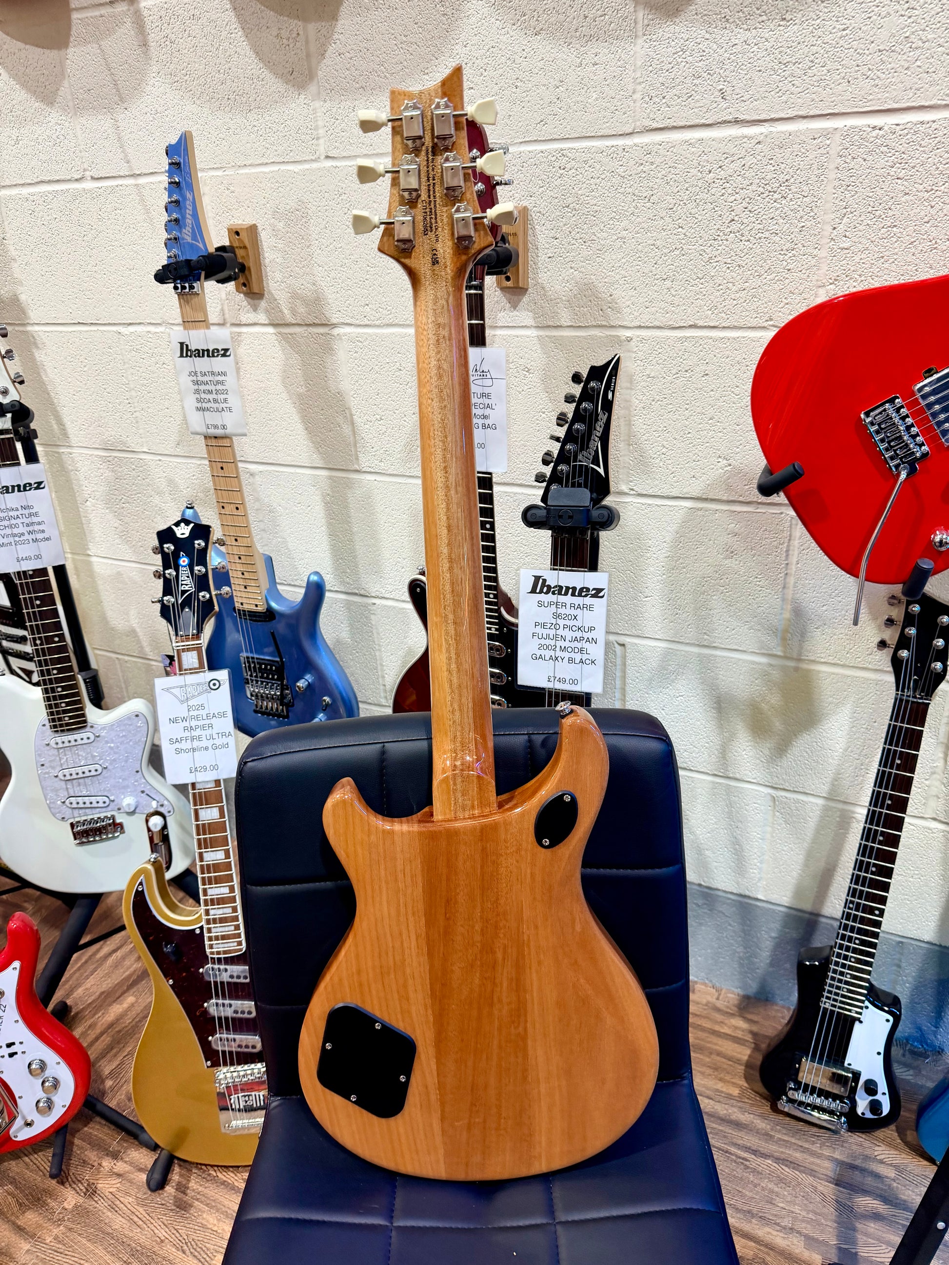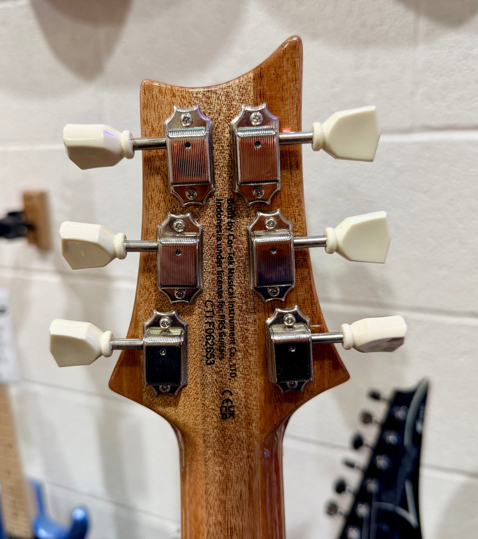 The PRS 594 is topped with carved figured maple, producing a tone that is characteristically bright with a clear bite whilst looking stunning. Backing up the maple top is a reliable mahogany back. These two tonewoods are perfectly matched for one another, as the maple brings out every note with sparkling clarity and dynamic sensitivity, whilst the mahogany back adds warmth and depth, resulting in a brilliantly balanced tone. Whatever style you choose to play, the PRS 594 is perfect for any situation.