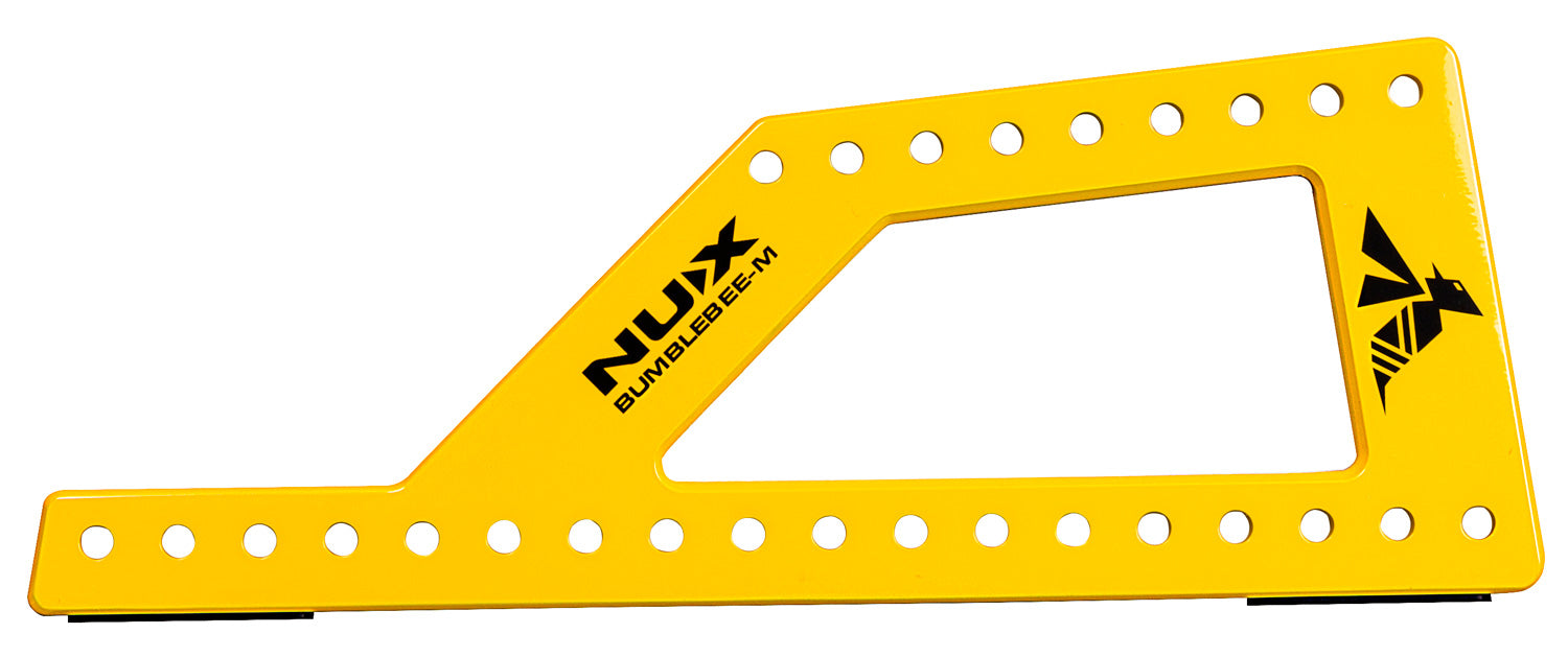 NUX Bumblebee is made by anodized aluminum material; which is "solid as a rock, light as a pillow". The bottom of the platforms are carved and well-supported, and gives you some space to cover your cables without losing any strength. And the side parts are strongly holds all the parts together, it can absorb the shock when you hit your pedal footswitch.
